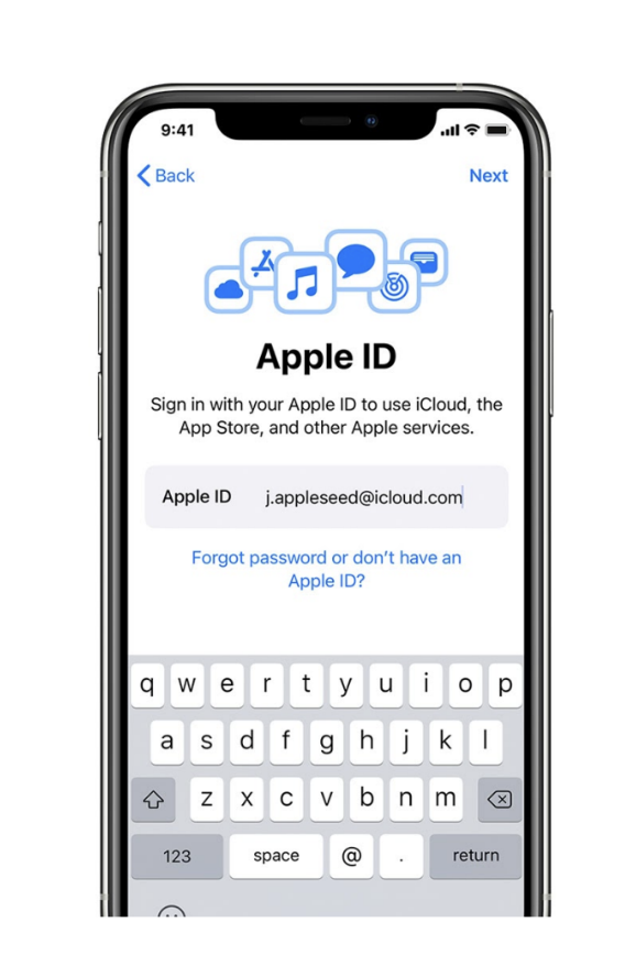 - Sign in with your Apple ID: Enter your Apple ID and password, or tap “Forgot password or don’t have an Apple ID?” From there, you can recover your Apple ID or password, create an Apple ID, or set it up later. If you use more than one Apple ID, tap “Use different Apple IDs for iCloud and iTunes?” When you sign in with your Apple ID, you might be prompted for a verification code from your previous device.