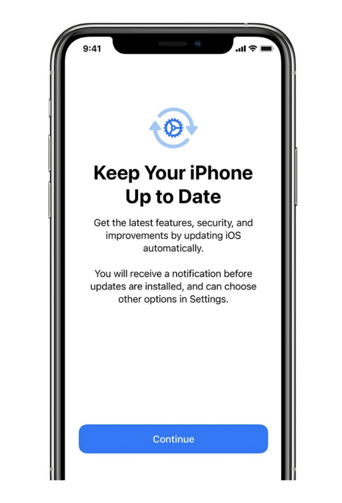 - Turn on automatic updates and set up other features: On the next screens, you can decide whether to share information with app developers and allow iOS to update automatically.
