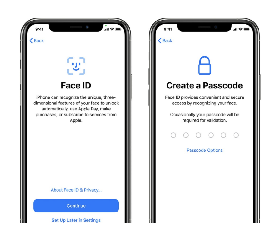 - Create a Passcode: Set a six-digit passcode to help protect your data. You need a passcode to use features like Touch ID and Apple Pay. If you’d like a four-digit passcode, custom passcode, or no passcode, tap “Passcode Options.”