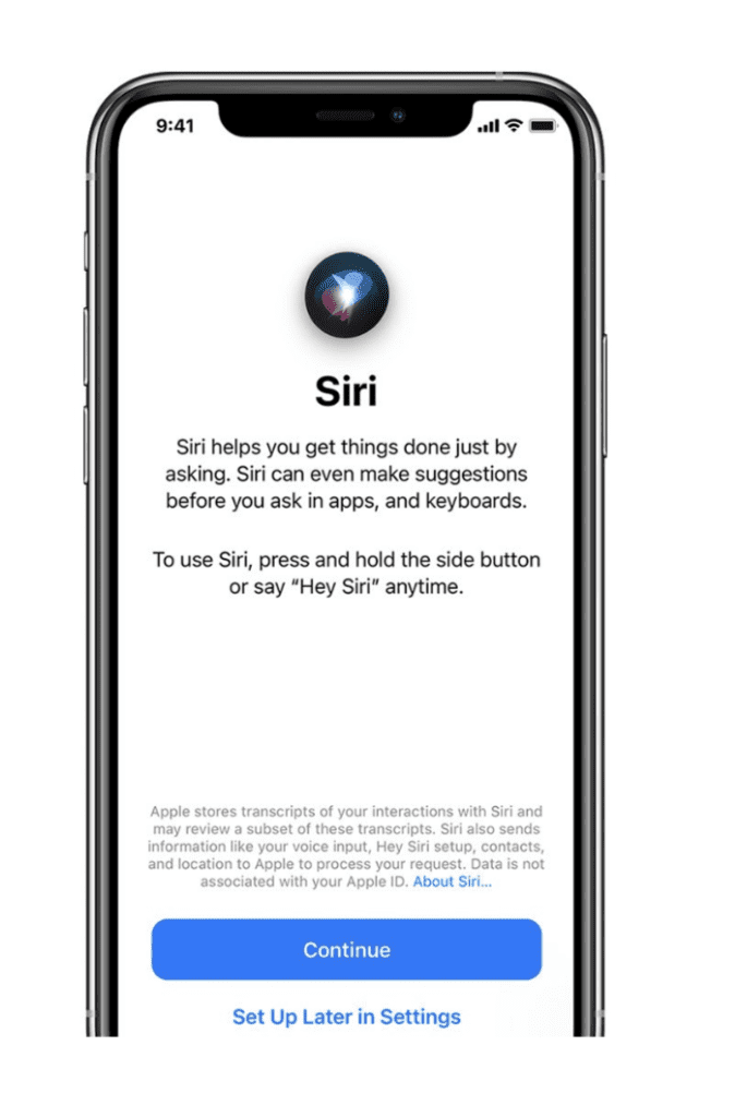 - Set up Siri and other services: You will be asked to set up or enable services and features, like Siri. You will be asked to speak a few phrases so that Siri can get to know your voice. If you signed in with your Apple ID and would like to set up optional Apple Pay and iCloud Keychain, follow those steps on the iPad.